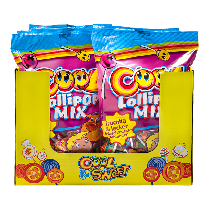 Lutscher in verschiedenen Formen und Geschmacksrichtungen, einzeln verpackt